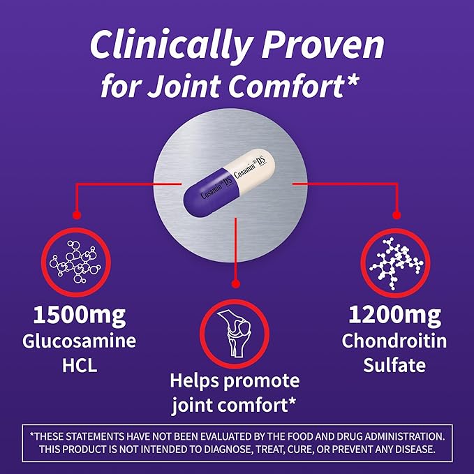 - Joint Health Support: this joint supplement contains the combination of 1500 mg Glucosamine HCl (FCHG49) and 1200 mg Chondroitin Sulfate (TRH122) that work together to help inhibit certain enzymes that break down cartilage and help promote joint comfort and mobility