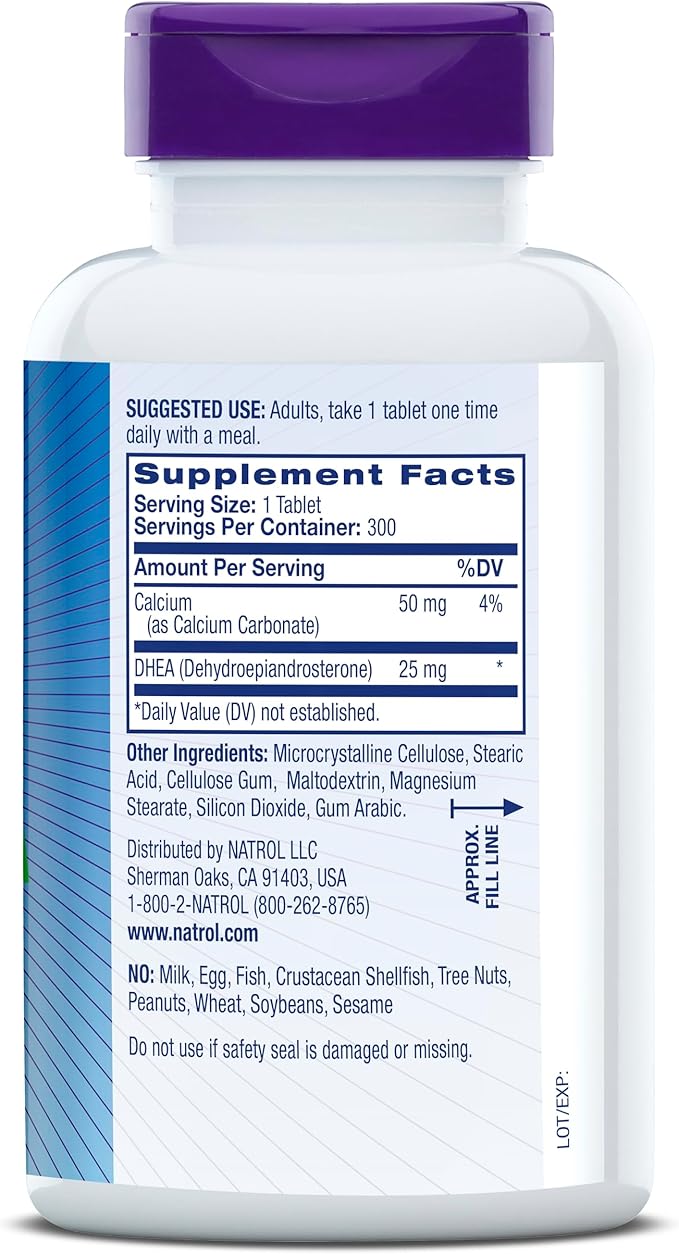 - Mood and hormone support supplement*: Contains one 300 count bottle of Natrol Mood & Stress DHEA 25mg Tablets for a 300-day supply