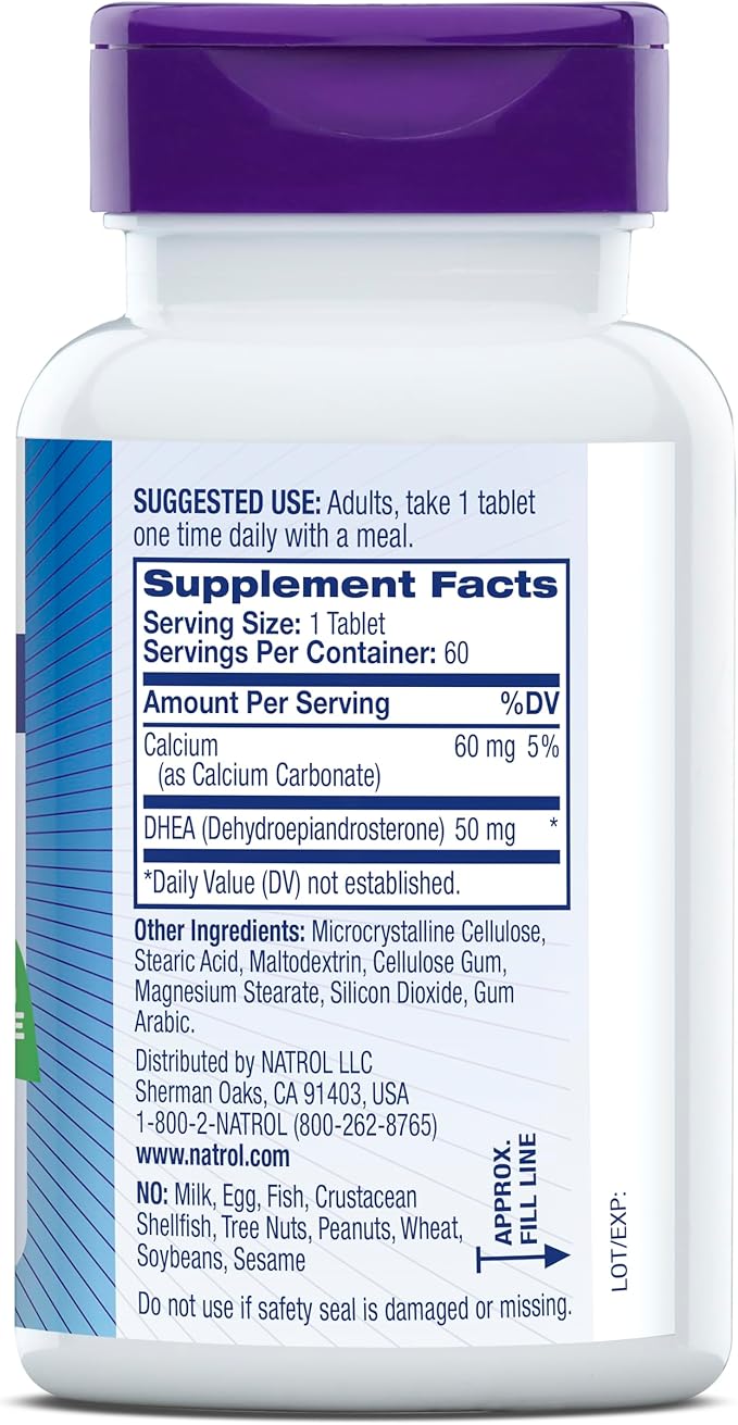 - Dietary supplement with 50mg of DHEA and Calcium to promote the balance of certain hormone level that decline with age*