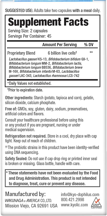 Kyolic Kyo-Dophilus Multi 9 Probiotic, for Strong Gut Health Balance and Support, 90 Capsules Total