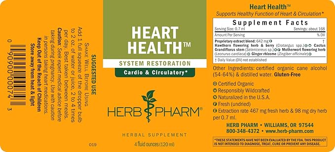 Herb Pharm Heart Health Liquid Herbal Formula with Hawthorn for Cardiovascular System Support - 4 Ounce