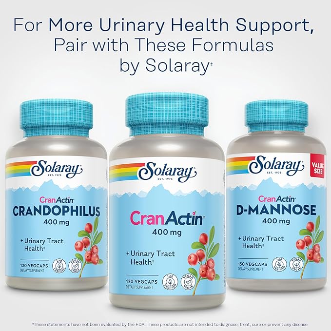 SOLARAY CranActin Cranberry Extract 400 mg - Cranberry Supplements for Women and Men - Bladder and Urinary Tract Health Support with Vitamin C - Vegan, 60-Day Guarantee, 120 Servings, 120 VegCaps