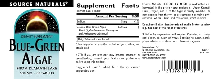 Source Naturals Blue-Green Algae from Klamath Lake* - 500 mg - 50 Tablets