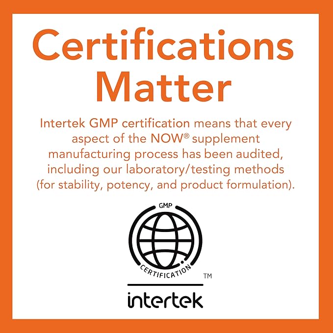 - GMP Quality Assured: NPA A-rated GMP certification means that every aspect of the NOW manufacturing process has been examined, including our laboratory/testing methods (for stability, potency, and product formulation).