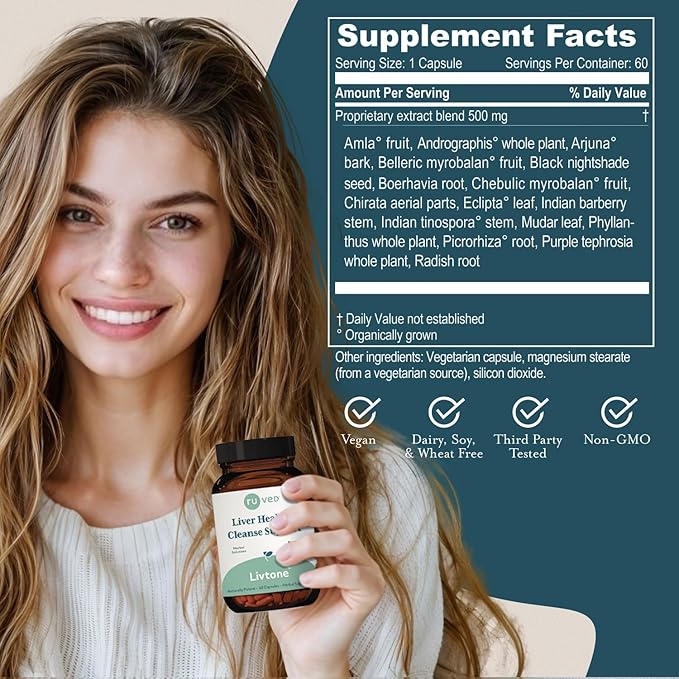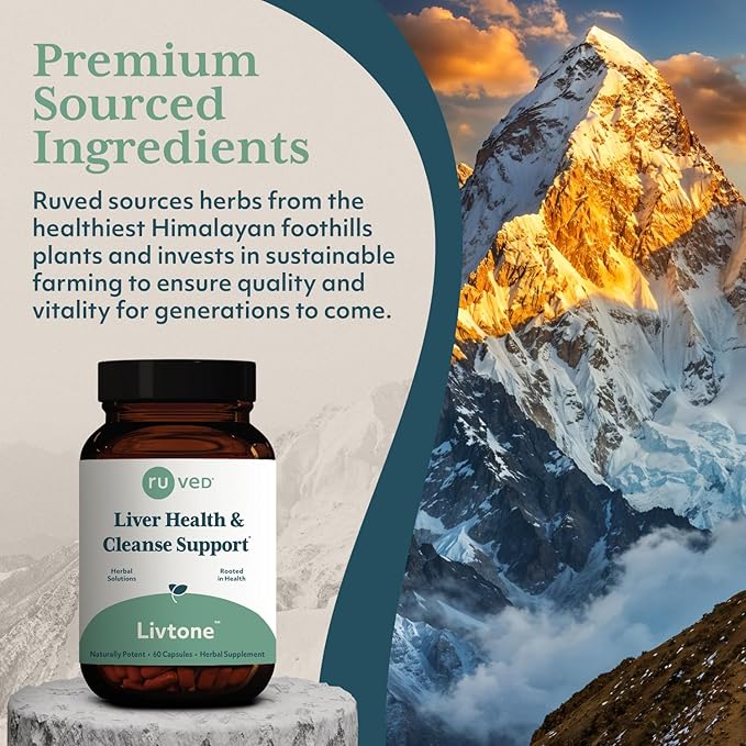 Ruved Livtone, Powerful Doctor-Formulated Liver Support with Berberine, Andrographis and Amla, Ayurvedic Herbal Supplement for Detoxification and Gastrointestinal Health, 60 Vegetarian Capsules
