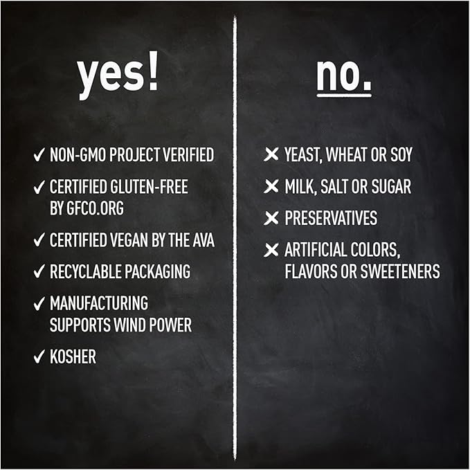 - CONTAINS NO - Yeast - Wheat - Soy - Milk - Salt - Sugar - Preservatives - Artificial Colors - Artificial Flavors - Artificial Sweeteners