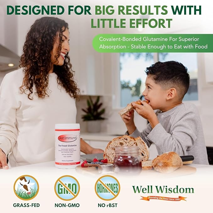 - Stable enough to take with food: Covalent bonded with superior stability that increases overall absorption of glutamine to the bloodstream - Compatible with other Well Wisdom supplements.
