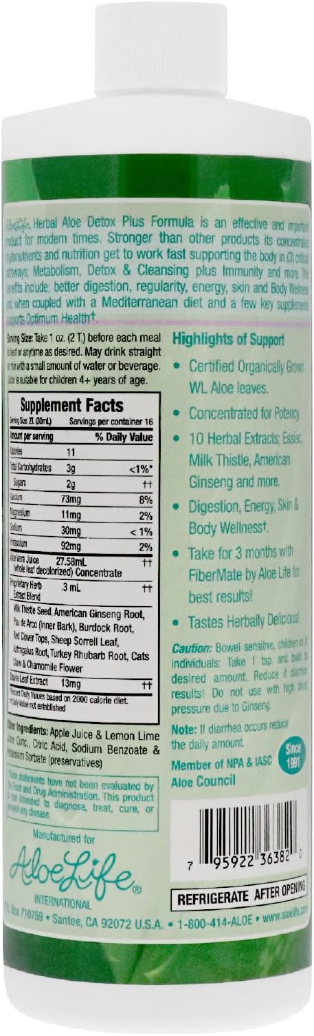 - ORGANIC ALOE DETOX: Aloe Life Detox Plus Formula is a gentle yet powerful product to support the body’s daily elimination & renewal with 10 herbal extracts in a base of Aloe Vera Leaf concentrate.