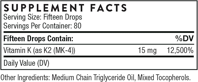 - 1 mg of Vitamin K2 (MK4) per drop