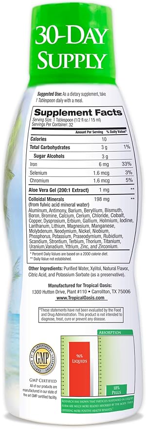 - TROPICAL OASIS TRACE MINERALS FORMULA IS NATURAL, ORGANIC & PLANT DERIVED – Our plant-based colloidal ionized trace minerals are derived from prehistoric mineral deposits in the state of Utah
