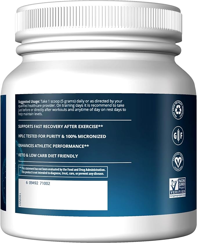 - RECOMMENDATIONS: Take 1 scoop (5 grams) daily or as directed by your qualified healthcare provider. On training days it is recommended to take before or directly after workouts and anytime of day on rest days to maintain levels.