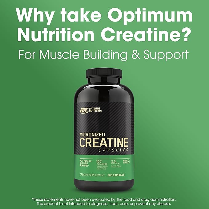 Optimum Nutrition Micronized Creatine Monohydrate Capsules, Keto Friendly, 2500mg, 300 Capsules (Packaging May Vary)