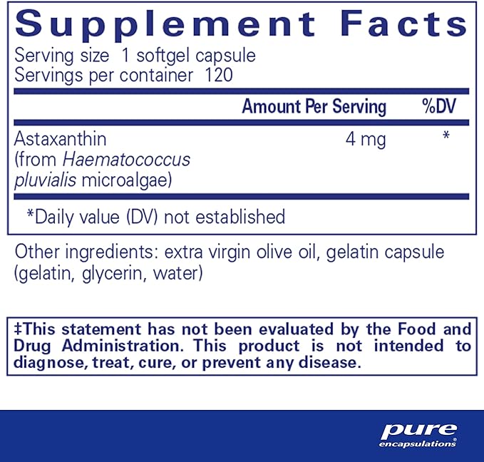 Pure Encapsulations Astaxanthin | Antioxidant Supplement for Joints, Skin and Eye Health, and Free Radicals* | 120 Softgel Capsules