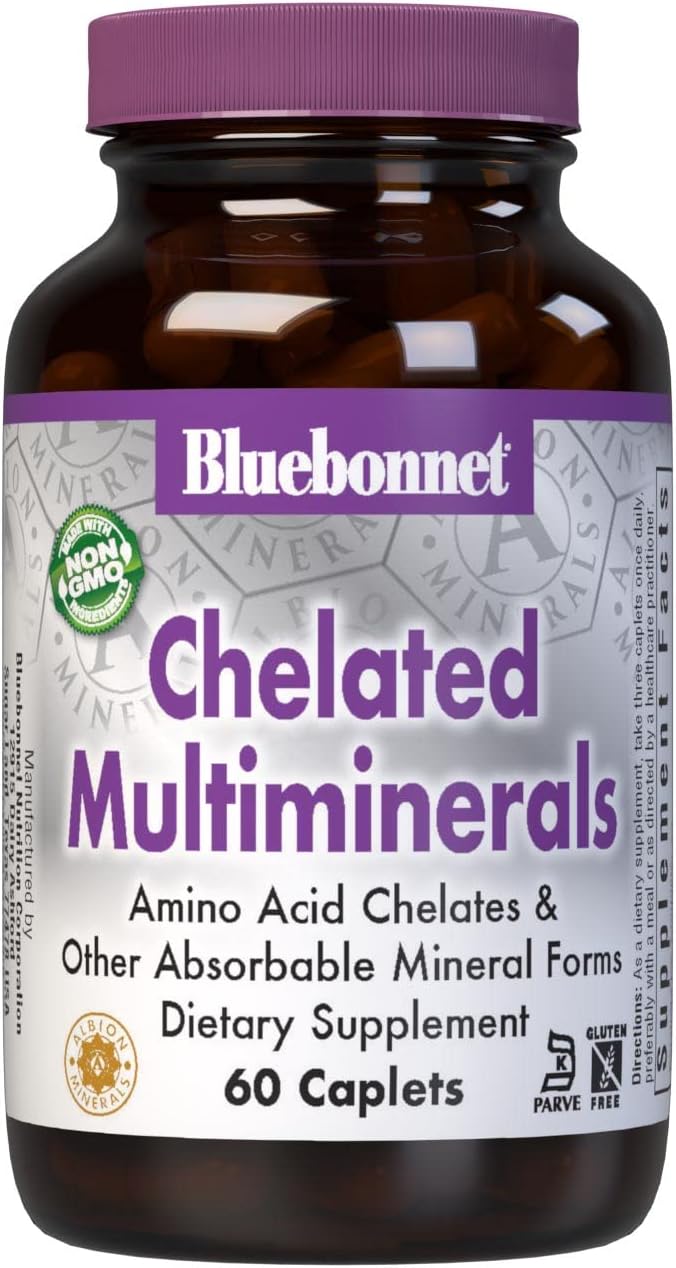 Bluebonnet Nutrition High Potency Chelated Multiminerals, Albion Chelated Minerals, Soy-Free, Gluten-Free, Non-GMO, Kosher Certified, Dairy-Free, 60 Caplets, 20 Servings