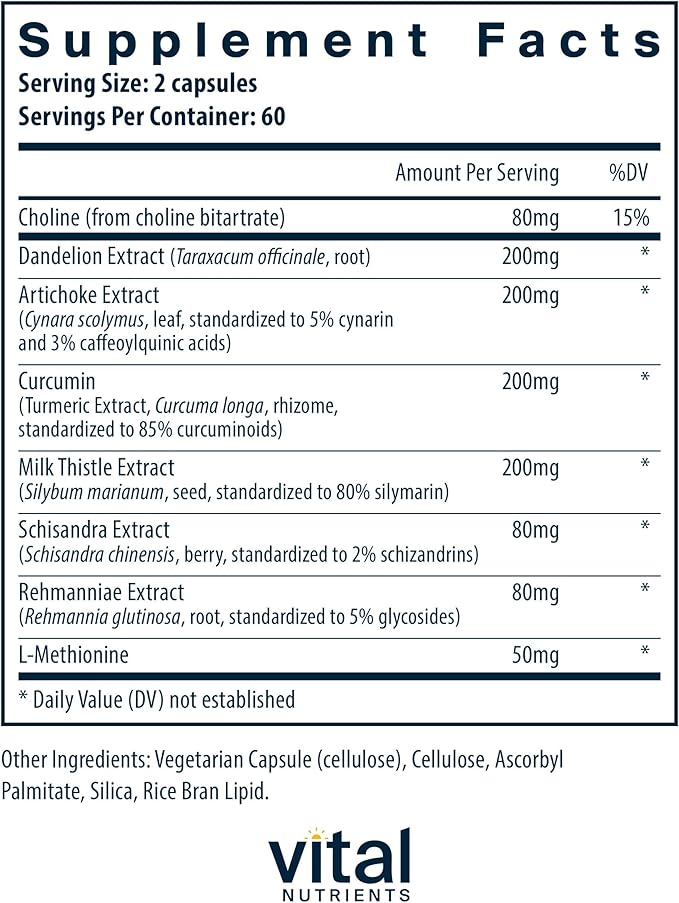 - Comprehensive Herbal Support Blend: The unique blend of herbal ingredients and nutrients in Liver Support work synergistically for liver health, including choline bitartrate, dandelion root extract, artichoke extract, milk thistle, curcumin, schisandra berry extract, rehmannia powder root extract, and l-methionine