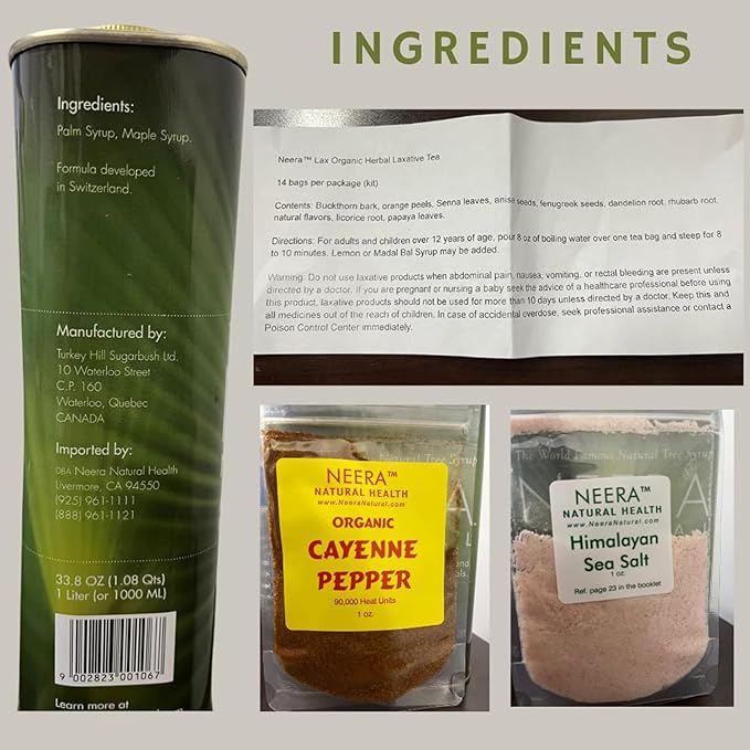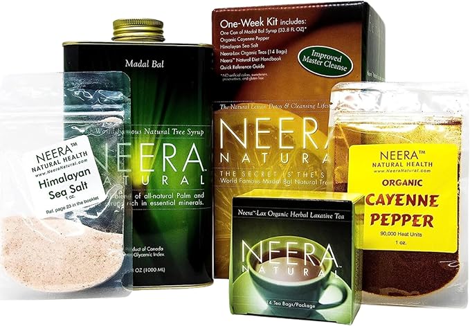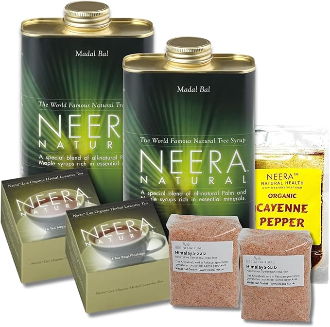- š¦ What's Inside: 10-14 Days Detox Cleanse - 2 Liter Cans of Madal Bal Syrup, 1 Neera instructional booklet, 2 boxes of Neera Organic Herbal Tea, 1 Cayenne Pepper, 2 Himalayan Salt