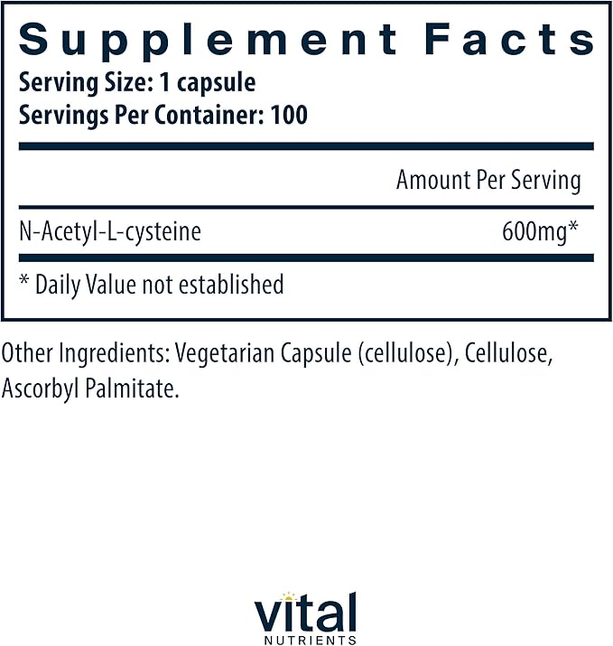 Vital Nutrients NAC 600mg | N-Acetyl Cysteine | Vegan NAC Supplement | Antioxidant for Sinus, Liver, Immune, and Respiratory Health* | Gluten, Dairy, Soy Free | 100 Capsules