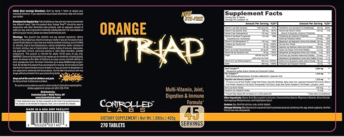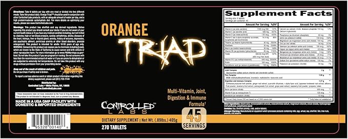 - Dynamic Trio: Our specially formulated and powerful multivitamins pack a powerful punch using vitamins, minerals, and nutrients essential for muscle recovery so you don't miss another workout! Taken twice daily, our dynamic multivitamins work to support joint, digestion, and immune function-in one tablet! Orange Triad lubricates joints and cartilage while building resiliency for connective tissues so you take your performance to the next level.
