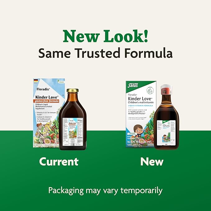 Floradix Kinder Love Children's Multivitamin - Liquid Multivitamin for Kids with Vitamins A, C, D & E, Calcium & More - Vegetarian, Non-GMO, Gluten-Free - 17 fl oz