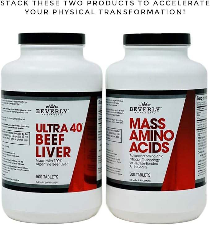 Beverly International Mass Amino Acids, 500 Tabs. Use Pre-Post Workout, with Meals, Essential for Muscle Recovery and Repair. Complete Amino Acid Profile