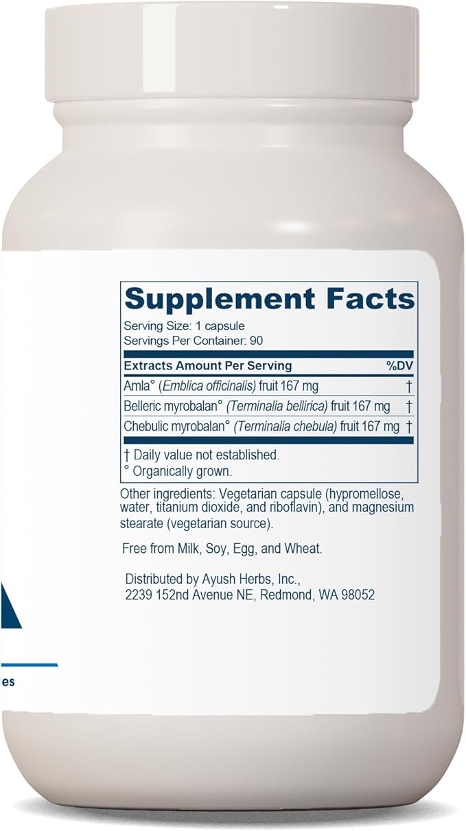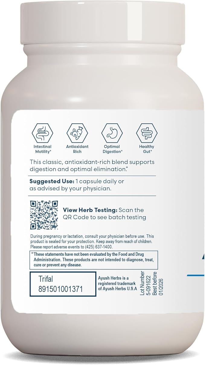 Ayush Herbs Trifal, Digestive Support Supplement for Women and Men, Capsules for Digestion, Intestinal Health, and Antioxidant Boost, Ayurvedic Herbs and Supplements, 90 Vegetarian Capsules