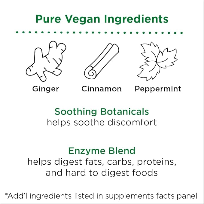 Nbpure Vegan Digestive Enzyme Complex – Daily Bloating, Gas, & Food Digestive Support for Women & Men – 12 Enzymes & 3 Herbs – Lactase, Protease, Lipase, Ginger, Cinnamon, Peppermint + More
