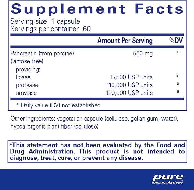 Pure Encapsulations Pancreatic Enzyme Formula - Digestive Enzymes for Digestion - Strengthens Gut Health* - Targeted Delivery Capsules - Gluten Free & Non-GMO - 60 Capsules