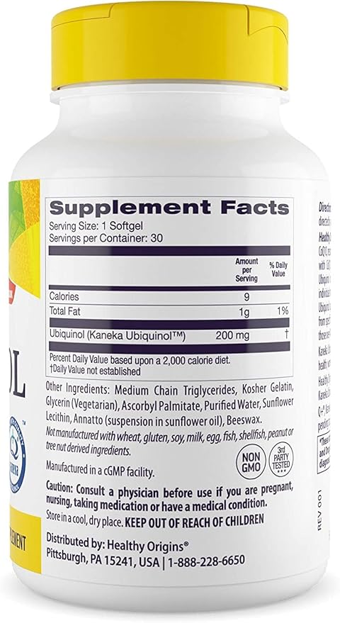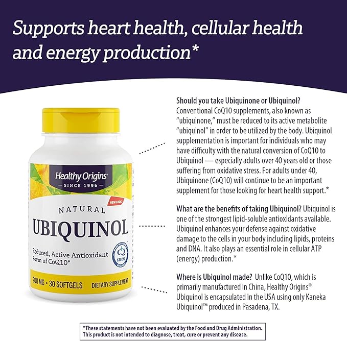 Healthy Origins Ubiquinol (Active Form of CoQ10), 200 mg - Activated Form of CoQ10 - Kaneka Ubiquinol Supplements for Heart Health & Antioxidant Support - Gluten-Free & Non-GMO - 30 Softgels