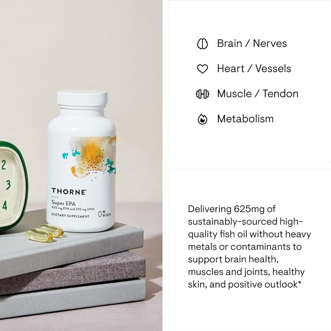 THORNE Super EPA - Omega-3 Fatty Acids EPA 425mg and DHA 270mg Supplement - Support Brain, Cardiovascular, Joints, and Skin - Gluten-Free, Dairy-Free, Soy-Free - 90 Gelcaps