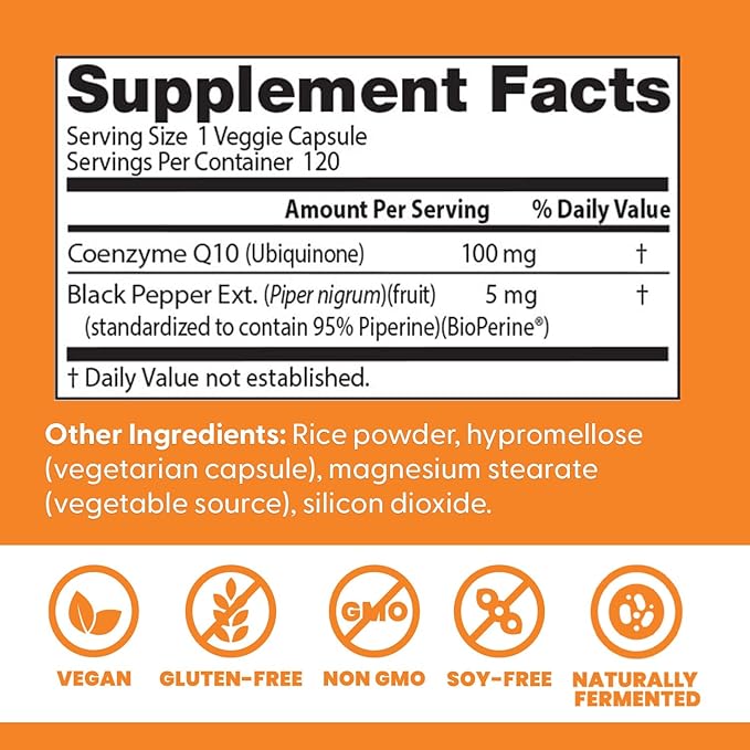 Doctor's Best High Absorption CoQ10 with Bioperine, Heart Health & Energy Production, Non-GMO, Gluten & Soy Free, Vegan, 100 Mg, 120 count
