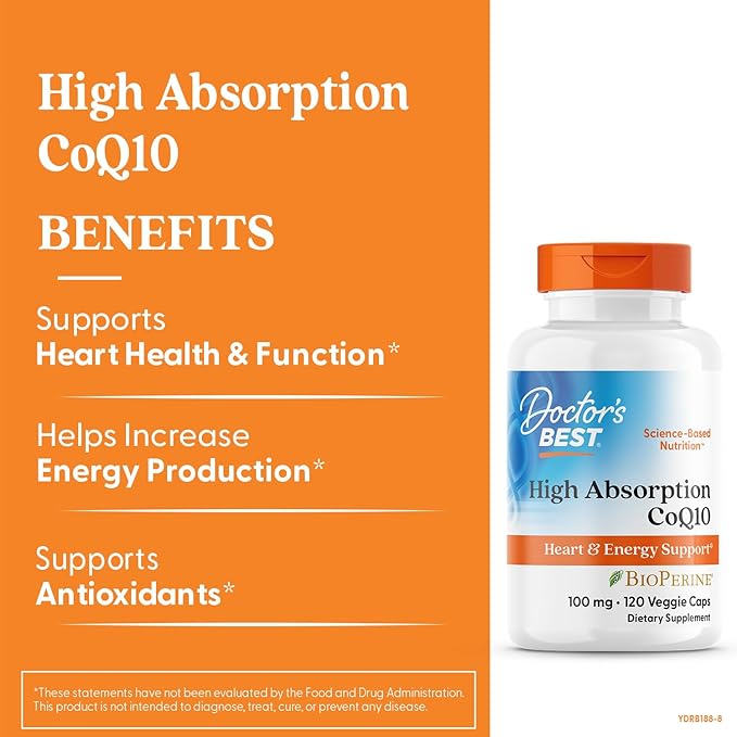 - Doctor's Best High Absorption CoQ10: easy-to-absorb form of a key nutrient that powers and protects heart vitality, cardiovascular health and cellular energy. CoQ10 also supplies antioxidant support to the heart, where it is naturally concentrated.