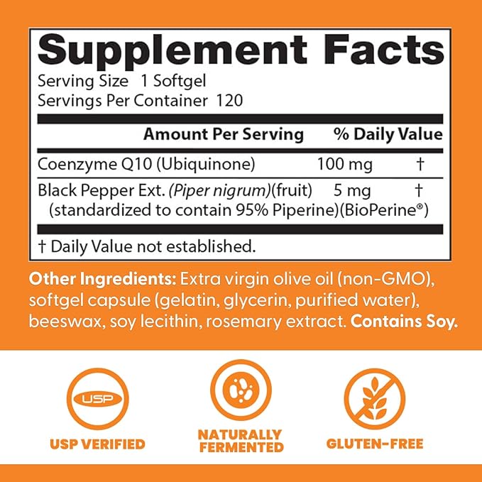 Doctor's Best High Absorption CoQ10 with BioPerine, Gluten Free, Naturally Fermented, Heart Health, Energy Production, 100 mg, 120 Count
