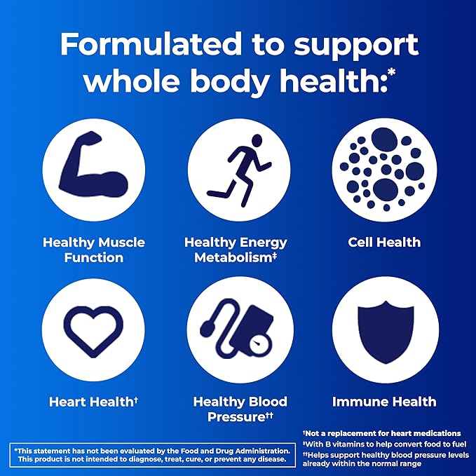 - Formulated to support: Heart health, (1) healthy blood pressure, (2) immune health, healthy muscle function, and physical energy by helping convert food to fuel