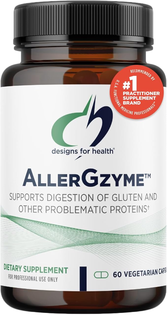 Designs for Health AllerGzyme Digestive Enzymes Supplement - Supports Digestion of Gluten, Dairy + Problematic Proteins with Protease + Bromelain - Non-GMO + Dairy Free (60 Capsules)