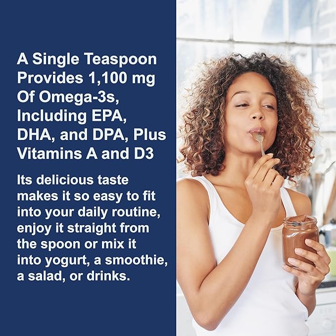 - 1,100 mg of omega-3s + vitamins A and D3 in a single teaspoon