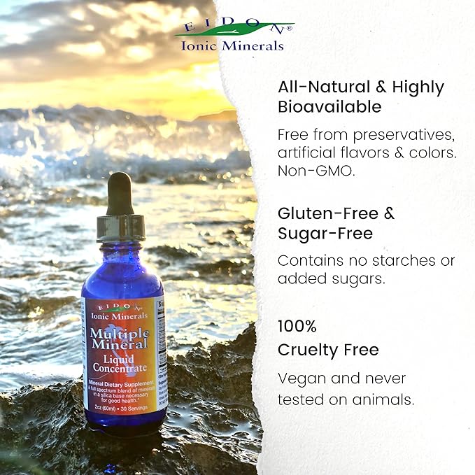 - CONCENTRATED MINERAL DROPS - Minerals Work in a Precise Balance or Ratio to one Another, Eidon's Formulation Reflects the Most Current Understanding for Optimal Balance in a Mineral Formula