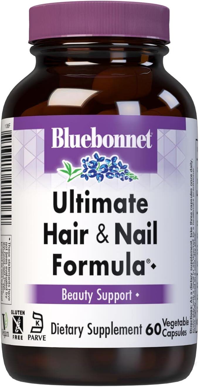 Bluebonnet Nutrition Ultimate Hair and Nail Formula, Vitamins*, Minerals*, Specialty Nutrients for Beauty Within*, Gluten-Free, Kosher-Certified, Dairy-Free, Vegan, 60 Vegetable Capsules, 20 Servings