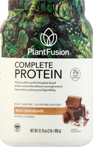 PlantFusion Complete Vegan Protein Powder - Plant Based With BCAAs, Digestive Enzymes and Pea Protein - Keto, Gluten Free, Soy Free, Non-Dairy, No Sugar, Non-GMO - Chocolate 2 lb