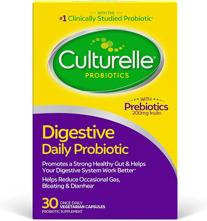 Culturelle Daily Probiotic Capsules For Men & Women, Most Clinically Studied Probiotic Strain, Digestive & Gut Health, Supports Occasional Diarrhea, Gas & Bloating, 1 Month Supply, 30 CT