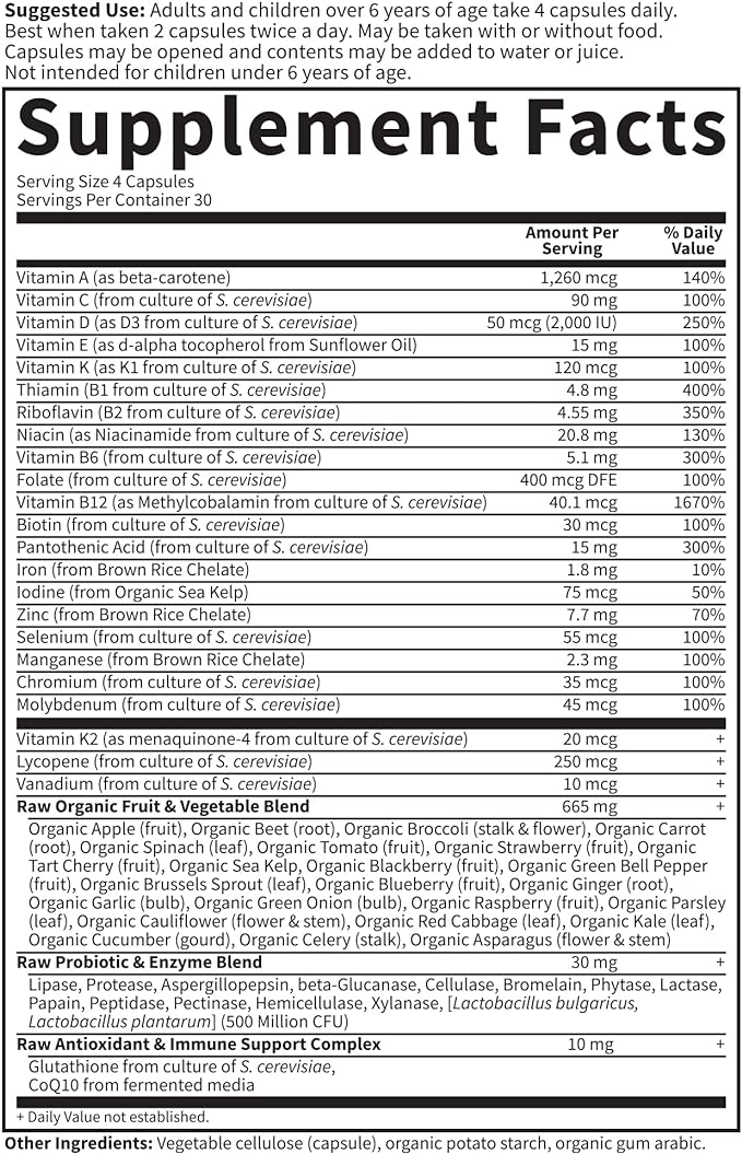 - MULTIVITAMIN SUPPLEMENT: Specially formulated multivitamin for the whole family made from nutritious and RAW whole foods