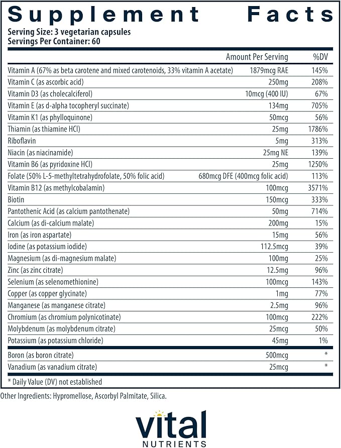 - Methylated Prenatal Multivitamin: Vital Nutrients Prenatal Multi-Nutrients provides the highest nutritional value for all systems of the body, including potent antioxidants, highly absorbable iron aspartate, and a therapeutic dose of folate as Metafolin L-5-MTHF