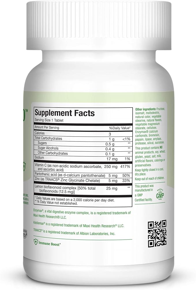 Maxi-Health Chewable Vitamin C - Zinc lozenges - Immune Booster - Cherry Flavor - 180 Chewies - Kosher