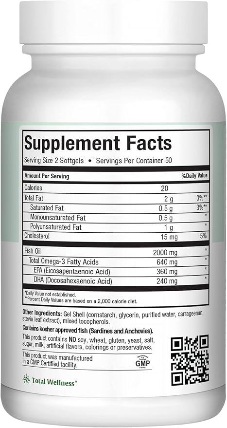 - TRIPLE STRENGTH FISH OIL: Our Fish Oil Supplements Provide Essential Fatty Acids With A Potently High Concentration Of 2000mg Of Fish Oil Omega 3 Per Capsule, Derived From Kosher Wild Salmon, Anchovy, Sardines, And Mackerel