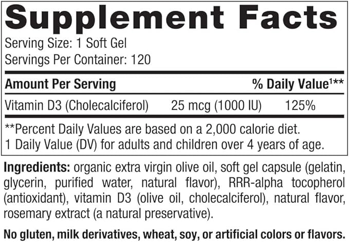 - BETTER ABSORPTION - Each easy-to-swallow, mini Vitamin D3 soft gel provides 1000 IU (25 mcg) of cholecalciferol, the natural, most easily absorbed and utilized form of vitamin D. Vitamin D3 1000 has a great orange flavor.