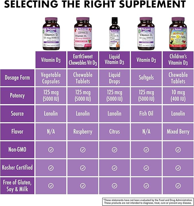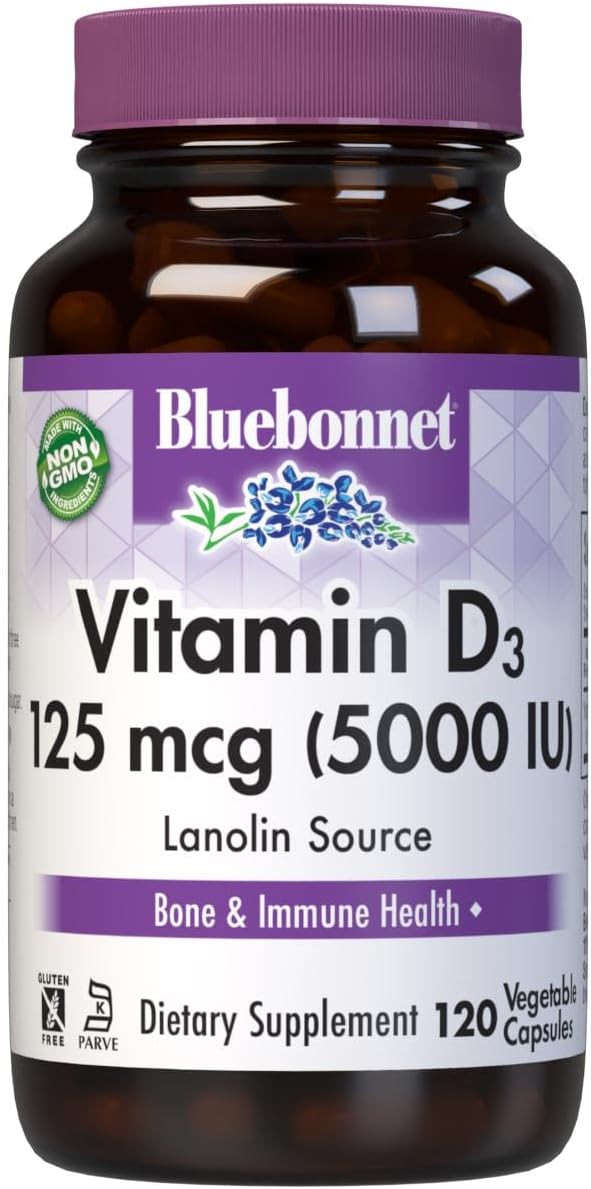 Bluebonnet Vitamin D3 5000 IU Vegetable Capsules, 120 Count