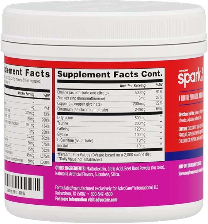 AdvoCare Spark Vitamin & Amino Acid Supplement - Focus & Energy Drink Powder Mix with Vitamin A, B-6, C & E - Also Includes L-Carnitine & L-Tyrosine - Fruit Punch, 10.5 oz
