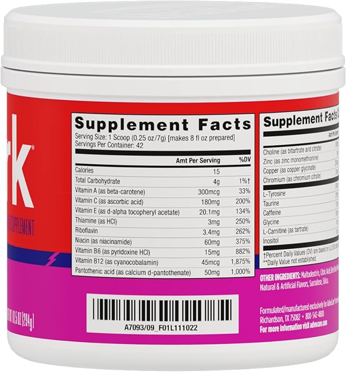 - Amino Acid Supplement: Spark energy powder contains vitamin C, vitamin E, L-carnitine, caffeine, and more to aid energy*