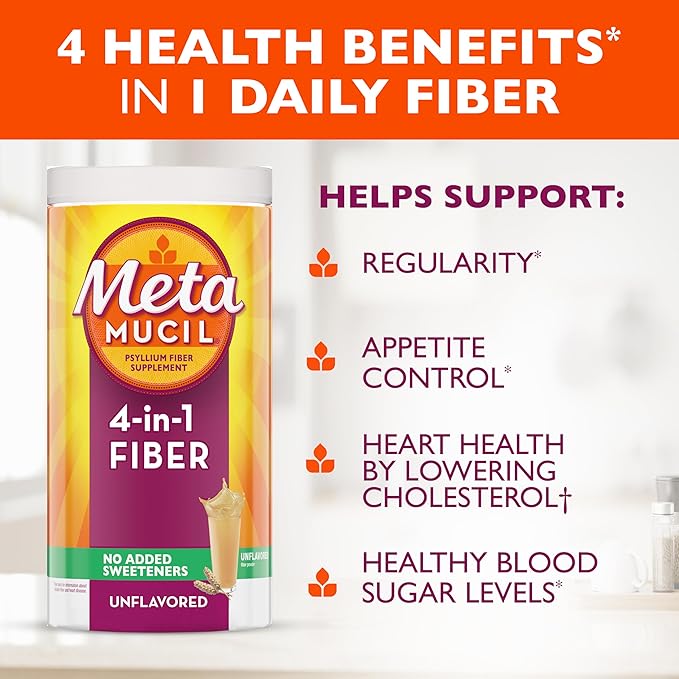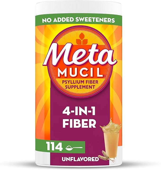 Metamucil, Unflavored Psyllium Husk Powder Fiber Supplement, Plain wih No Added Sweeteners, 4-in-1 Psyllium Husk Fiber Powder for Digestive Health, #1 Doctor Recommended Fiber Brand, 114 teaspoons