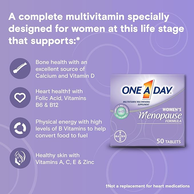 One A Day Women's Menopause Multivitamin with Vitamin A, Vitamin C, Vitamin D, Vitamin E and Zinc for Immune Health Support, Tablet