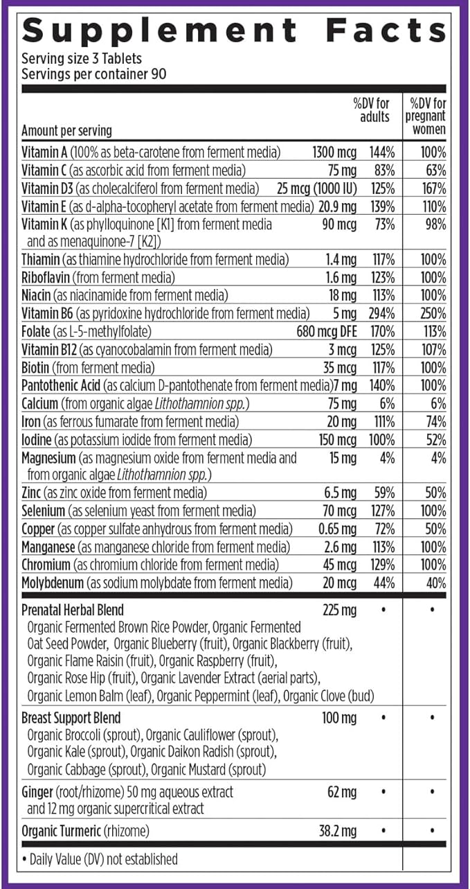 • 3 NUTRIENT-PACKED TABLETS support baby’s healthy development and mom’s healthy pregnancy.*100% Daily Value of Iron, and rich in Folate, B Vitamins, Vitamin D3, Vitamin C, A and Zinc.